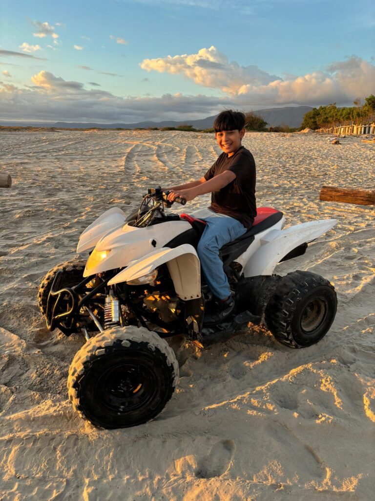 Giro in quad sulla spiaggia – Emozionante avventura sulle spiagge sabbiose di Salalah. Opzioni disponibili: 30 minuti o 1 ora, adatta sia a bambini che adulti.
