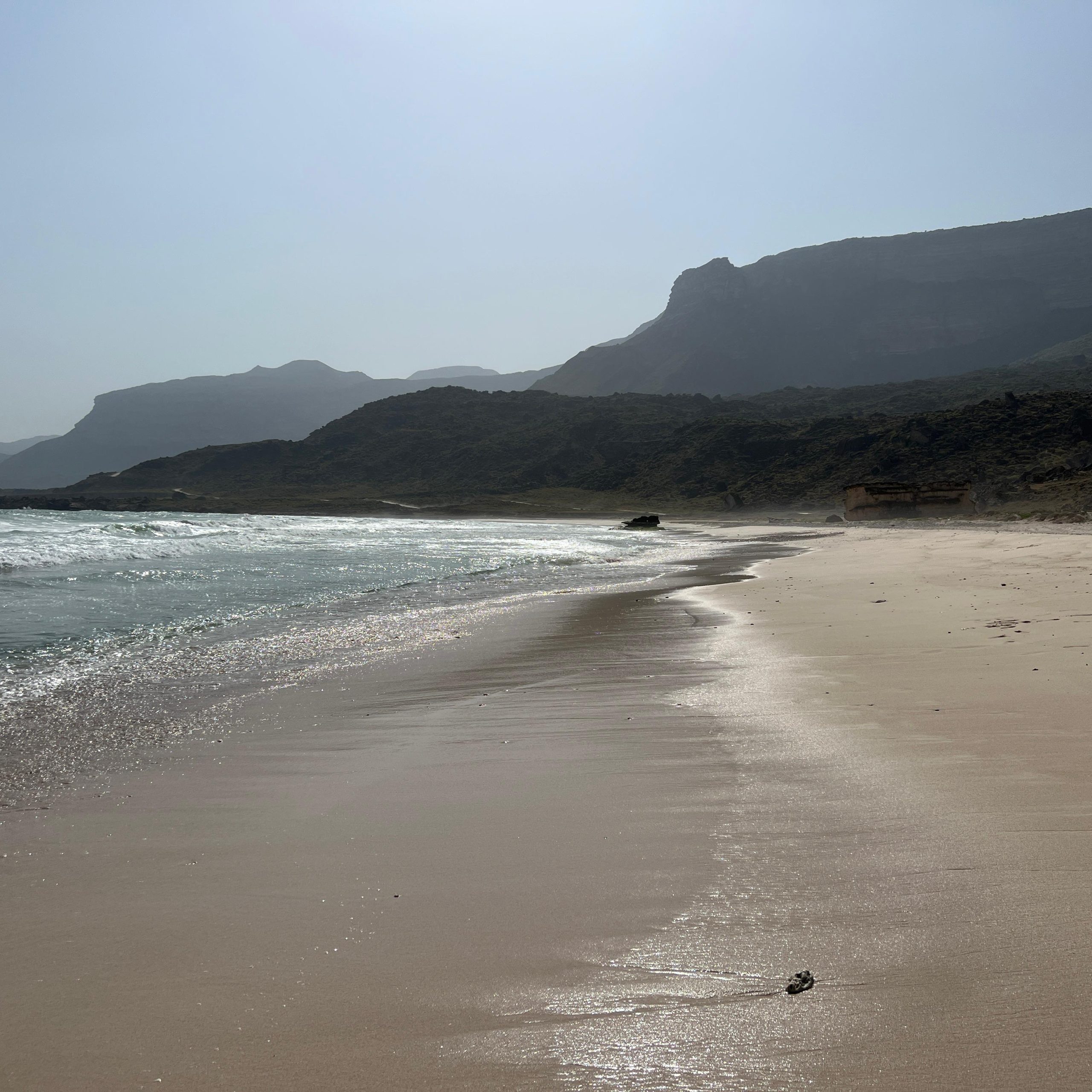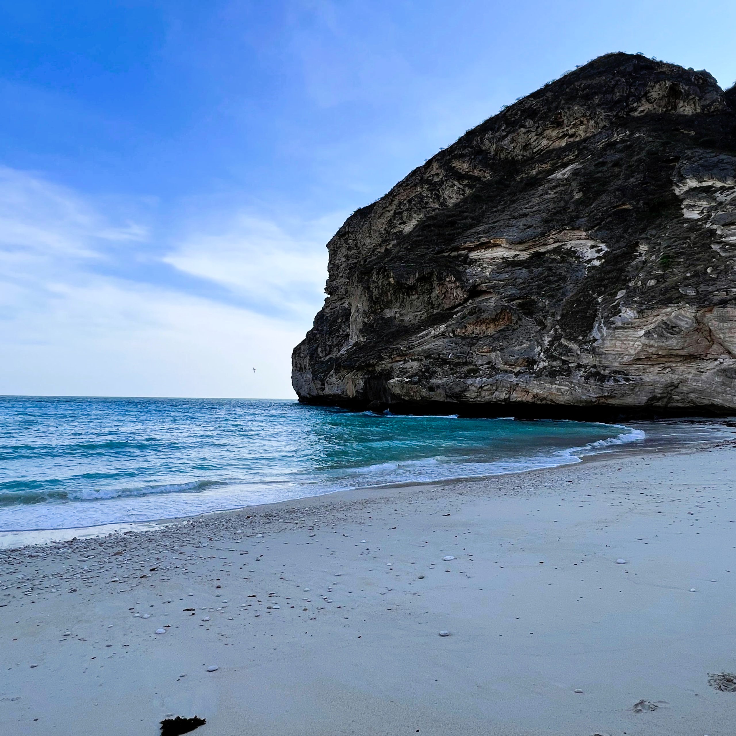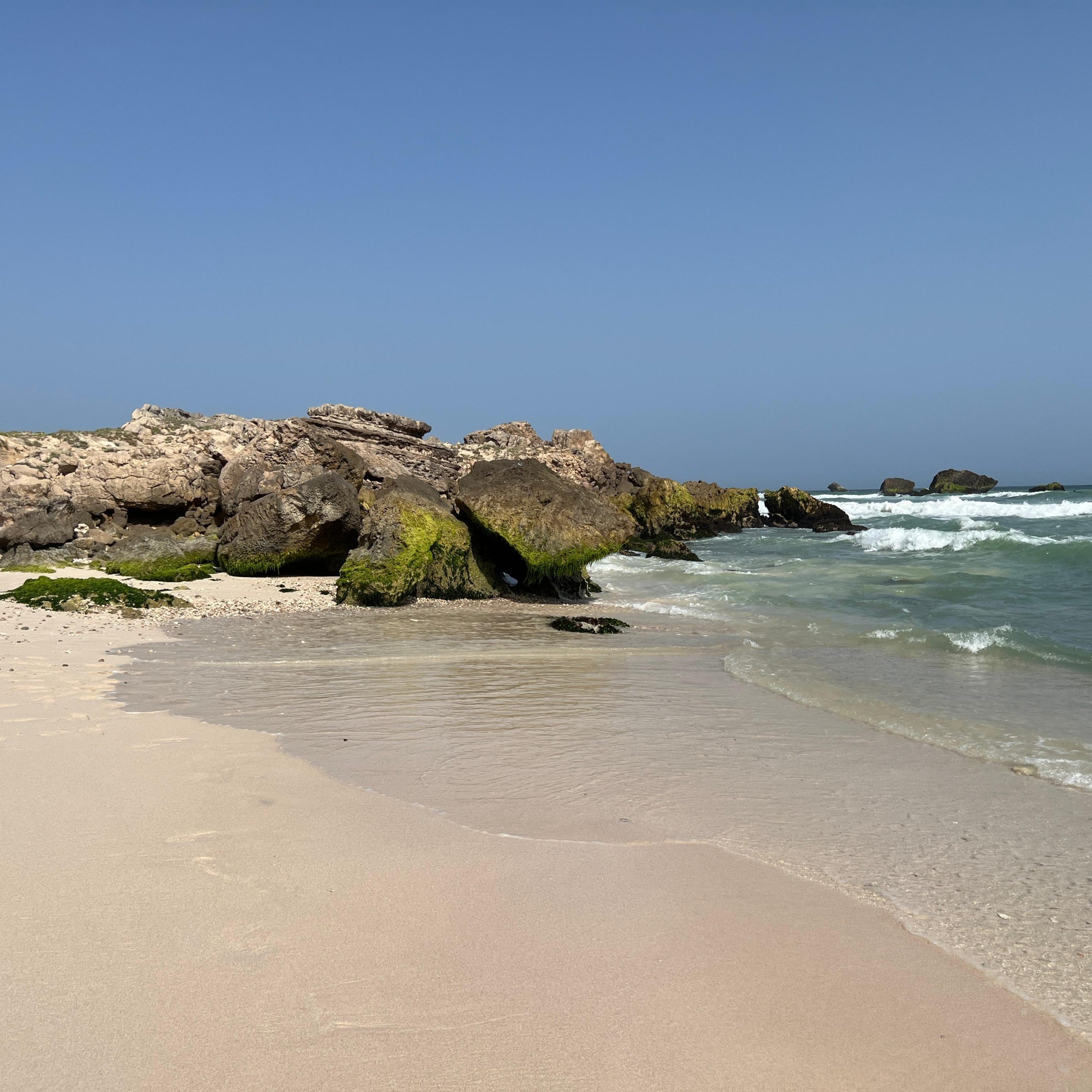 🏖️ Spiaggia Fazayah – Considerata una delle spiagge più belle dell’Oman, ricorda i Caraibi – sabbia dorata, acqua turchese e montagne verdi tutt’intorno.